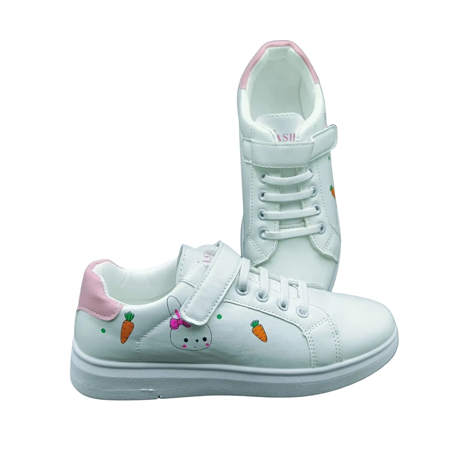 Old Beijing Cloth Shoes White Shoes Spring Girls' Sports Shoes Medium and Big Children Flat Women's Breathable Shoes Casual Children Board Shoes